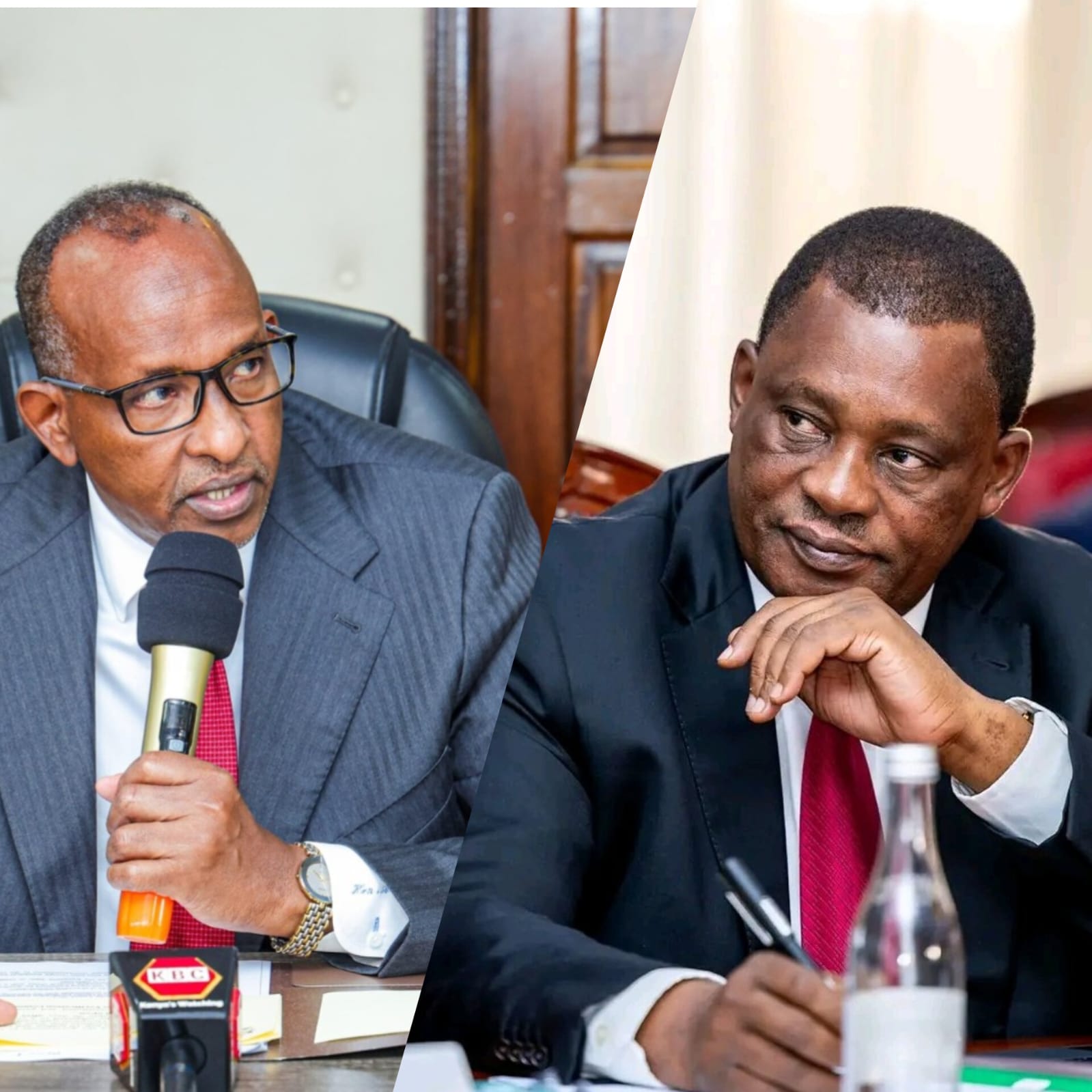 CS Health Aden Duale (l) and former public service CS Justin Muturi (r). Duale has dismissed Muturi’s revelation of his constant appearance at State House an envy. Photo: Duale/Muturi.