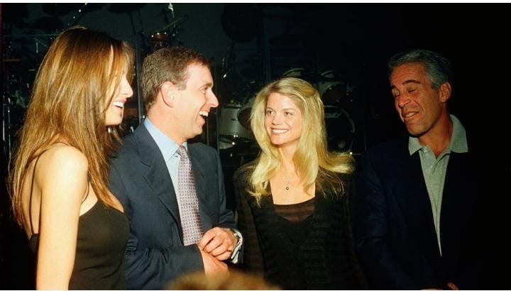 From left; Melanie Trump, Prince Andrew, Gwendolyn Beck and Jeffrey Epstein during a party at Mar-a-lago in 2000 //Photo courtesy