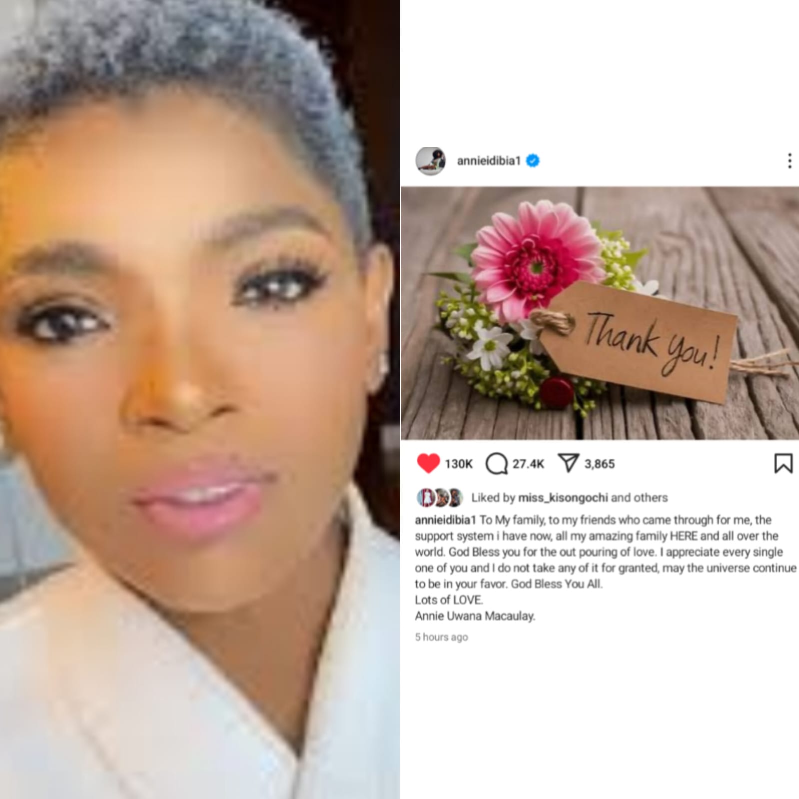 “To my family, to my friends who came through for me, the support system I have now, all my amazing family HERE and all over the world. god bless you for the out pouring of love. I appreciate every single one of you and I do not take any of it for granted, may the universe continue to be in your favor. God bless you all. lots of love,” Annie posted on her Instagram.