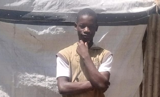 Oduory Titus Oseso while outside their tent at Humwanda flood rescue center where they have been staying since 2020|Photo Courtesy|