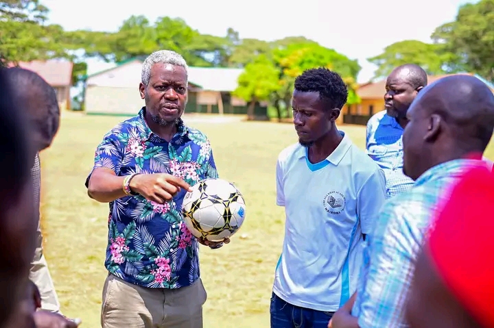 Ugunja MP hopeful Engineer Frederick Owino (ZB) holding a ball in his hands at a past event //photo courtesy