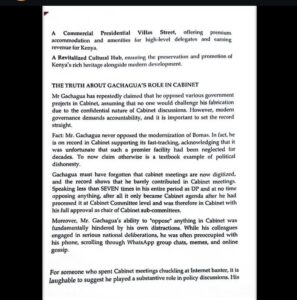 “Mr.Gachagua never opposed the modernisation of Bomas. In fact, he is on record in Cabinet supporting it’s fast-tracking , acknowledging that it was unfortunate that such a premier facility had been neglected for decades.To now claim otherwise is a textbook example of political dishonesty,” Itumbi claimed.