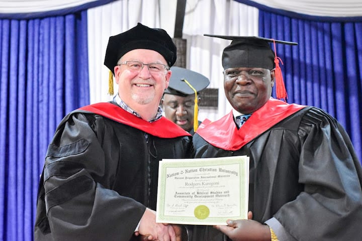 Rev. Karagoni Mambo, Principal of Nation to Nation Christian University Kamkunji Campus, receives an Associate Degree from Dwight Howard, International Director of Harvest Preparation Schools of Ministry, during the 2023 graduation ceremony in Nairobi. // Photo courtesyThe theme for the fellowship is “Spiritual Covering and Leadership”, anchored in 2 Kings 6:1–6. Organisers say the event will also provide an opportunity to engage with potential enrollees and introduce new applicants to the university’s ministry-centered education model.