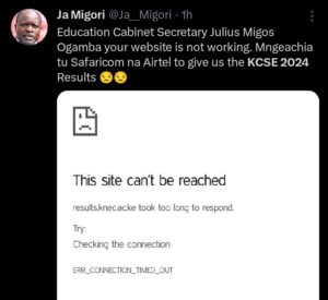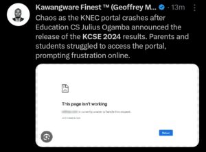 “Chaos as the KNEC portal crashes after Education CS Julius Ogamba announced the release of KCSE 2024 results. Parents and students struggle to access the portal prompting frustration online,” he said.