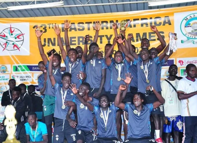 Uganda Martyrs university celebrating after crowned the East African University games champions// PHOTO COURTESY. The prestigious 13th East African University games came to...