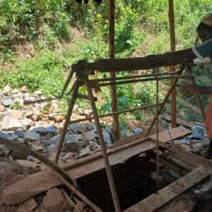 A pit dug at the Nyal-Gunga site where miners extract gold, showcasing the challenging and labour-intensive nature of the mining process.