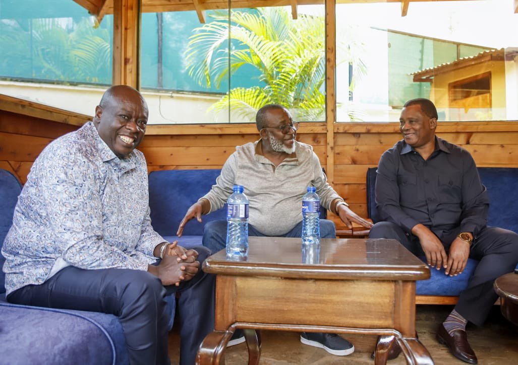 “Unity of the mountain,” as former DP Rigathi Gachagua meets ex Kenya Kwanza CSs Justin Muturi and Mithika Linturi in Nyeri. Photo: Rigathi Gachagua.